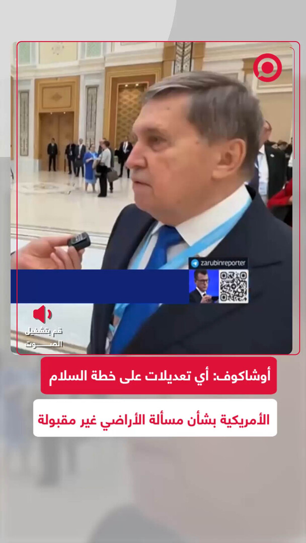 Play/Pause Mute/Unmute أوشاكوف.. أي تعديلات على خطة السلام تتعلق بالأراضي "غير مقبولة" Save post Share Facebook X VK.com Telegram