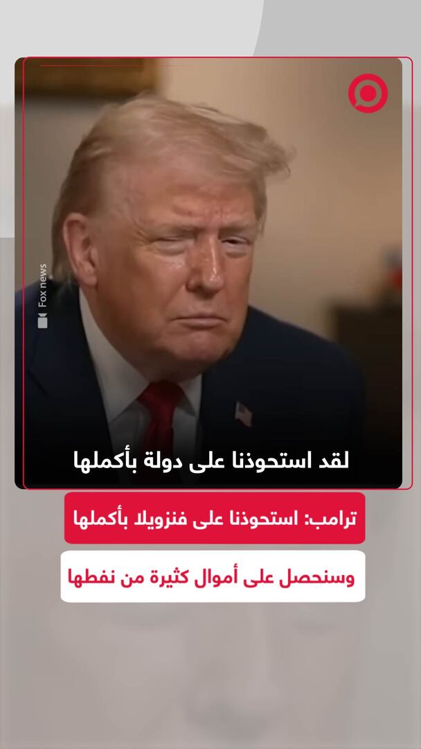 Play/Pause Mute/Unmute ترامب: استحوذنا على فنزويلا بأكملها وسنحصل على أموال كثيرة من نفطها Save post Share Facebook X VK.com Telegram